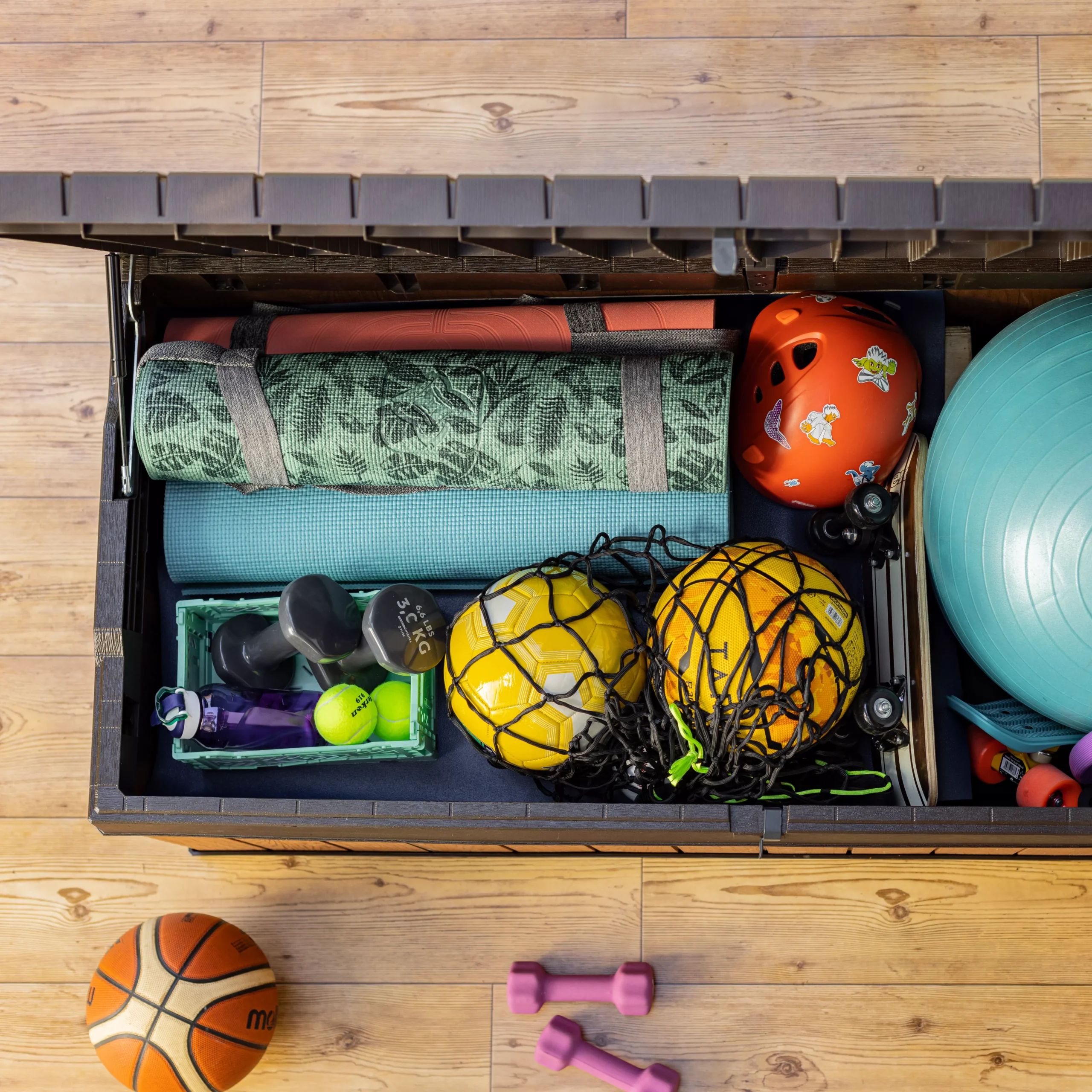 - Ideal outdoor storage box for garden tools and games, furniture cushions and other accessories